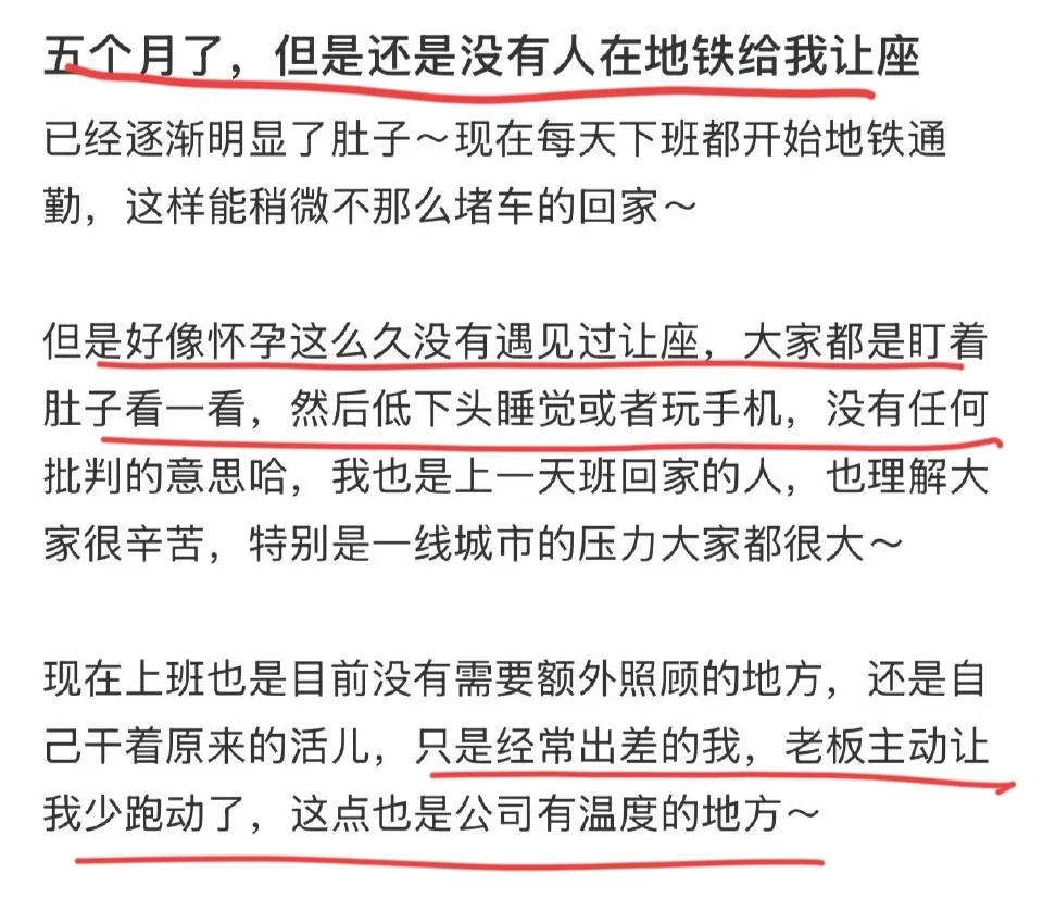 但是她坐地铁的时候,大家都是盯着她的肚子看一眼,然后就无动于衷的低下头睡觉或者玩手机。