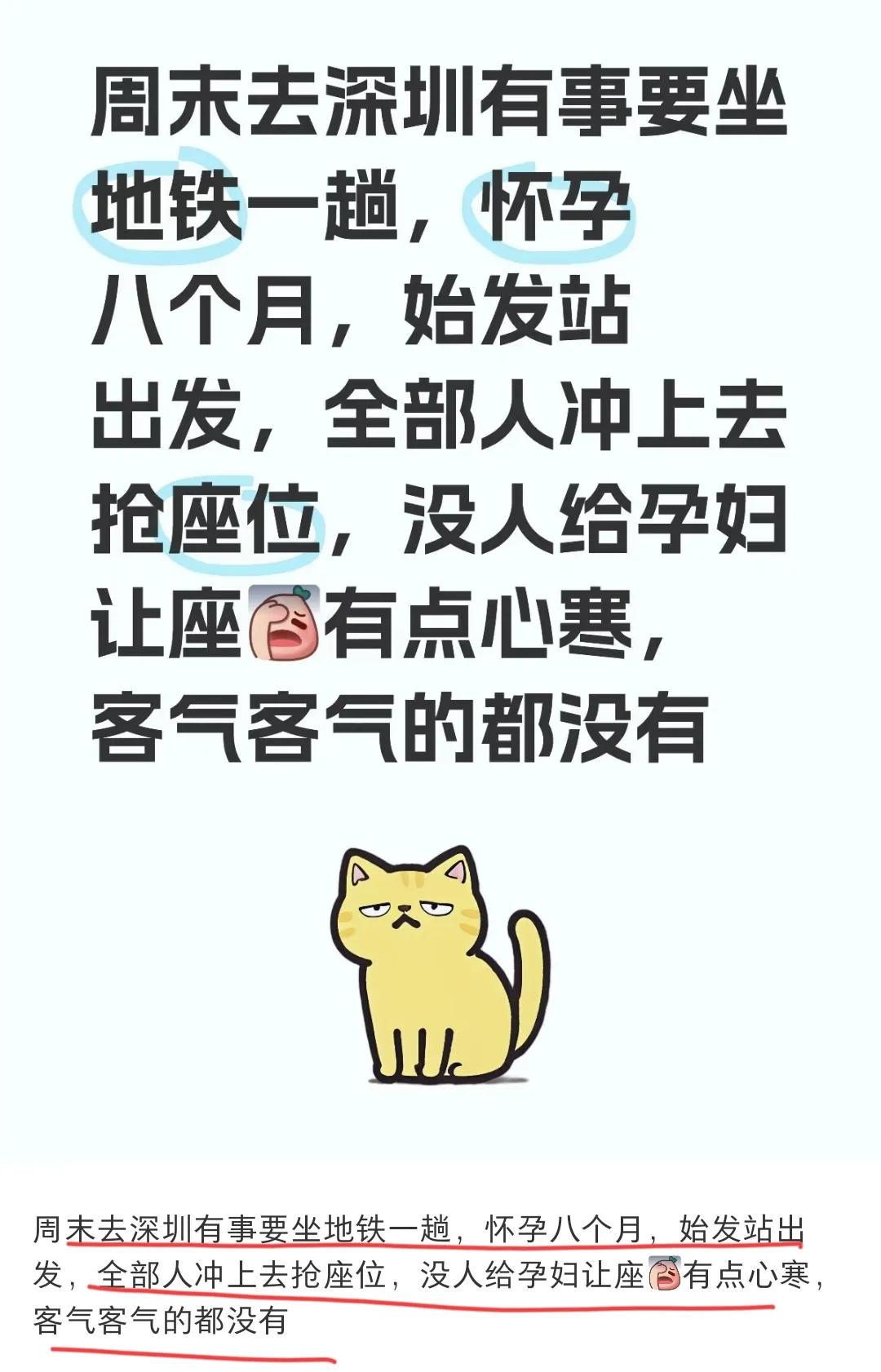 而她自己怀孕9个月,周末坐地铁出门,在人不多的情况下没找到位置。