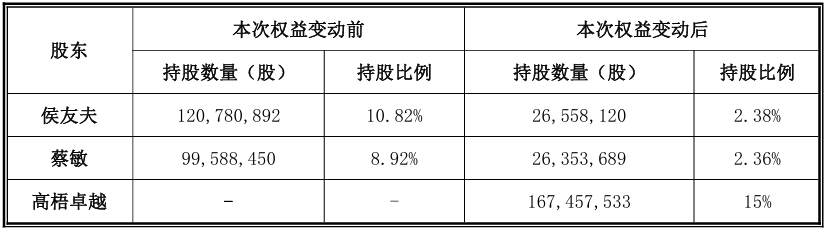 同时,侯友夫与蔡继东先生、上海赫宏优企业管理合伙企业(有限合伙)签署了《共同控制暨一致行动性协议》,约定双方共同控制公司,双方成为公司控股股东,共同实际控制人。