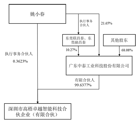 姚小春系高梧卓越的普通合伙人及执行事务合伙人,同时姚小春为中泰工业的控股股东及实际控制人,因此姚小春为高梧卓越的实际控制人。